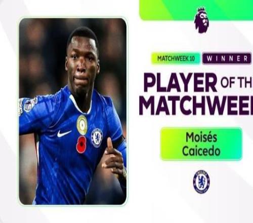 官方:切尔西中场凯塞多被评为英超第10轮最佳球员