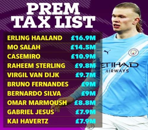 • 2025年英超球员缴税榜:哈兰德1690万镑居首,萨拉赫第二
