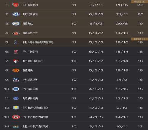 英超一夜变天!枪手翻车仍6分领跑蓝军升第2黑马进前4+曼联第8