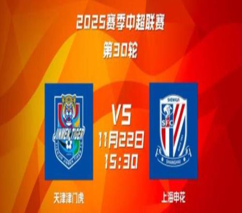 11月22日15:30,2025中超联赛第30轮,上海申花将客场挑战天津津门虎。目前,申花队排在中超积分榜第2位,落后榜首海港队2分。