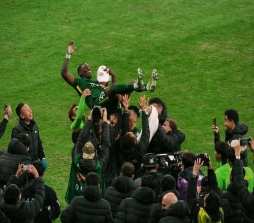 11月22日,2025中超联赛收官战,北京国安主场5-1大胜梅州客家。北京国安球员何宇鹏在社交媒体里表示:“能在国安踢球真的很幸福,法比奥实至名归的金靴太帅啦。”