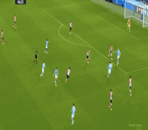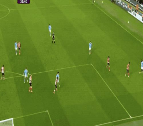 第65分钟,谢尔基再次展示娴熟的技术,曼城的新10号上演插花脚传中,福登的头球击中门柱,弹进球网。