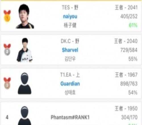 韩服排行榜更新:TES打野naiyou以2041分登顶韩服! 24直播网 2026-01-02 18:03:03 电竞体育1月2报道 根据排位统计小程序显示,韩服前十排行榜更新,TES打野选手naiyou登顶。 上一篇: Ghost:观看和学习的对象是BeryL,大赛中关键的就是果敢性下一篇: Faker:大家新年快乐,事事顺心,生活中充满美好的事情