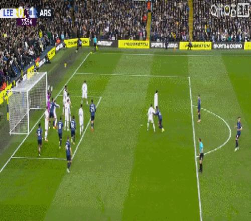 第38分钟,阿森纳开出角球造利兹联门将乌龙,阿森纳客场2-0领先!